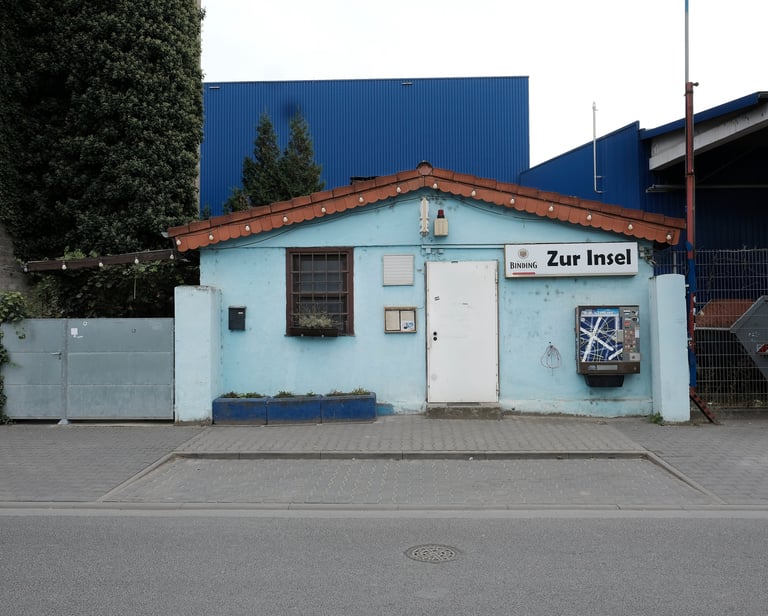 "Die Insel" as it is called is a small, clearly defined part of Frankfurt's eastern harbour. From the large structures of loading cranes, concrete plants, and container terminals, to small pubs and dilapidated structures to places where nature is trying to assert itself, it stands in stark contrast to the gleaming glass structures of the nearby financial district. Since 2018 I have been documenting the changes taking place at this little-noticed part of the city.